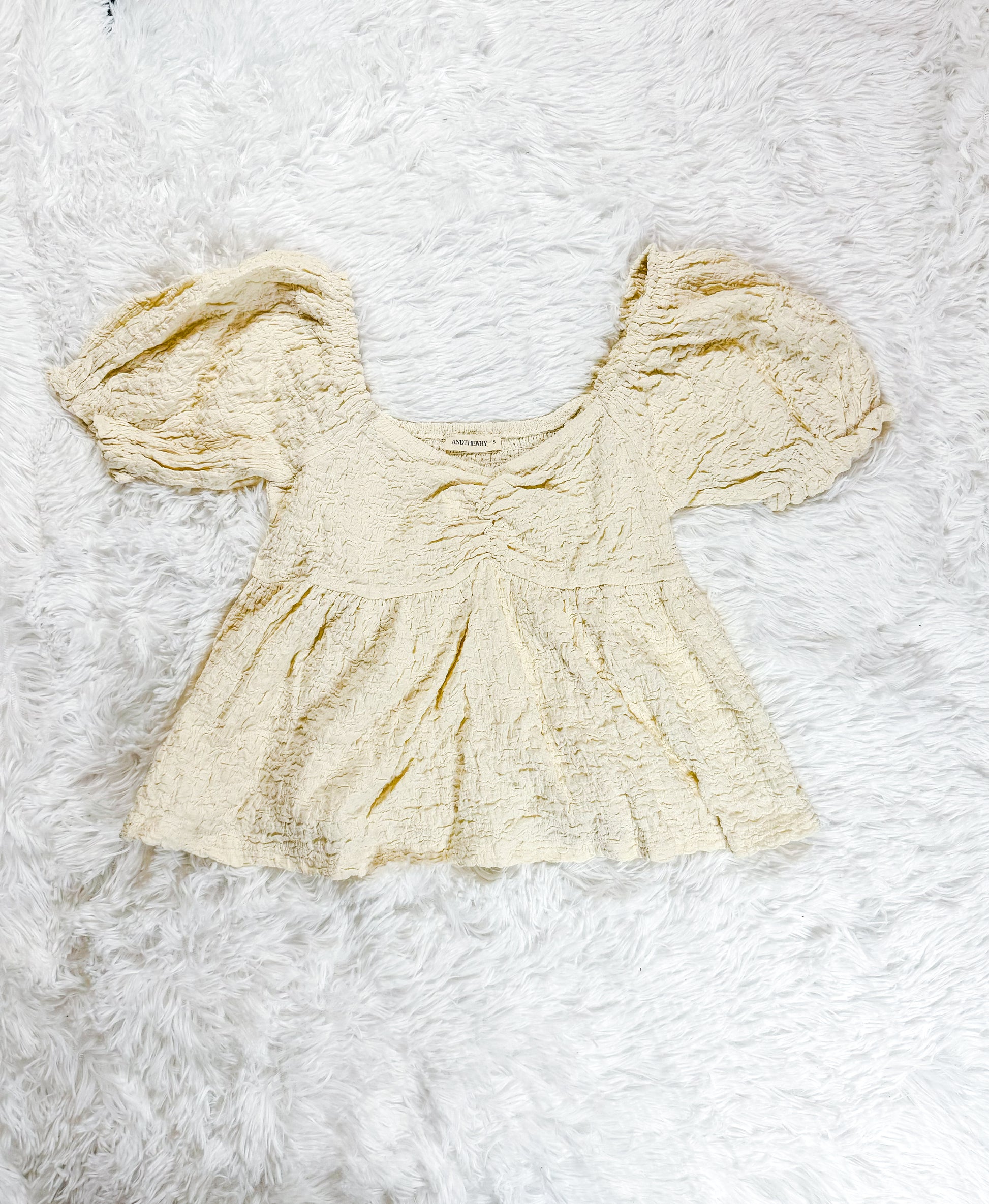 This lovely textured and smocked top will be a staple piece in your closet! Endless ways to wear this beautiful top.